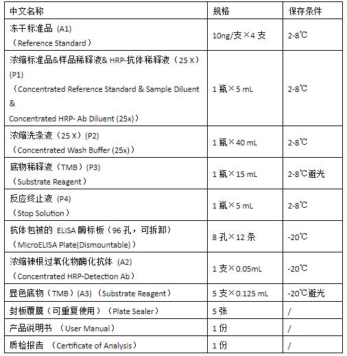 重組胰蛋白酶酶聯(lián)免疫吸附測定試劑盒.試劑盒組成及保存